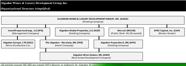 The current corporate organizational structure of AWLD and how we have operated substantially for the past year appears below.