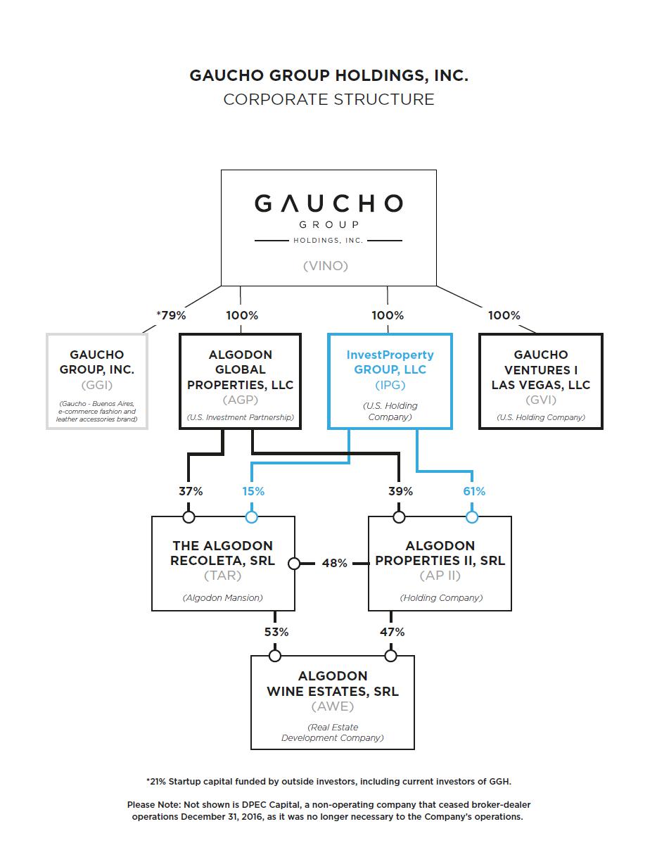 The Company was incorporated on April 5, 1999 in the State of Delaware in the dot com era, and has pivoted from its origins as one of the earliest online private investment banking firms to its current mission and offerings. Effective March 11, 2019, the Company changed its name from Algodon Group, Inc. to Gaucho Group Holdings, Inc. to reflect its expanded growth strategy, progress, and transition to a diversified luxury goods company.